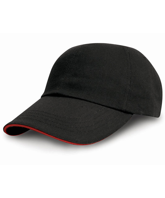 Black/Red - Low-profile heavy brushed cotton cap with sandwich peak